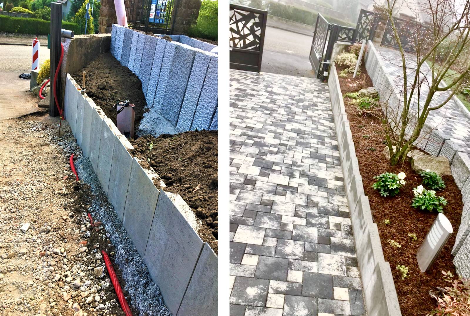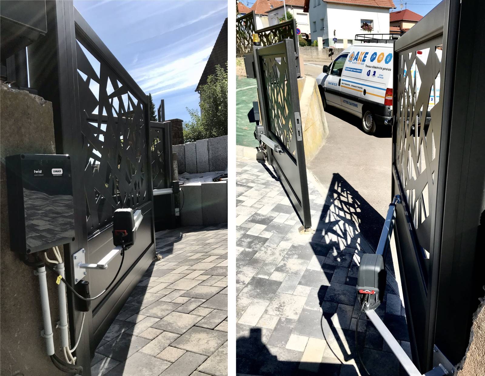 Pour une utilisation plus simple et moderne, nous avons créé une alimentation électrique pour le moteur du portail électrique permettant une ouverture et fermeture sans effort depuis l'intérieur de la maison ou l'extérieur. Nous avons aussi créer une alimentation électrique pour la porte du garage.