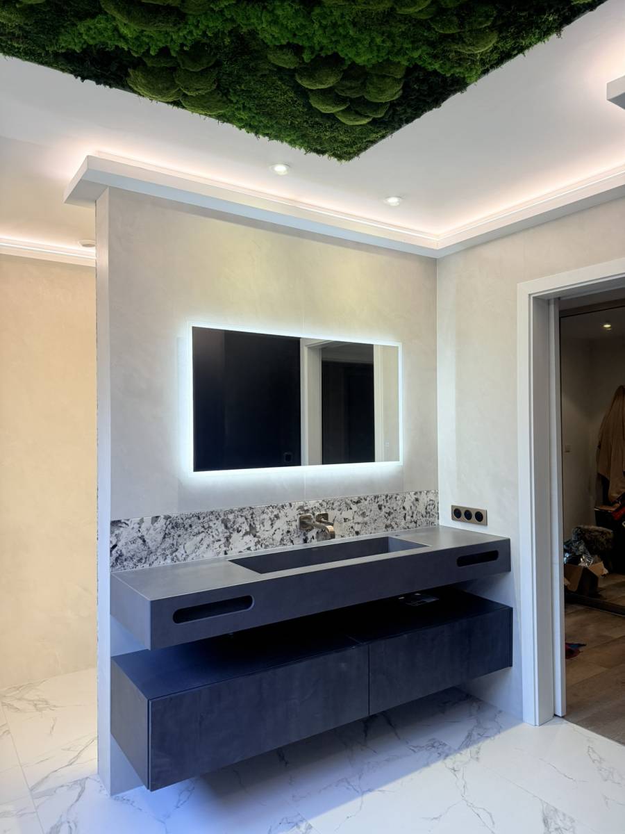 C'est avec un immense plaisir que nous nous vous dévoilons cette superbe réalisation électrique dans une salle de bain au design raffiné !